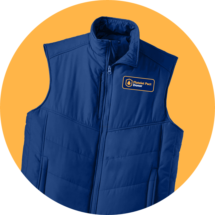 Don’t let winter freeze you in your tracks. Come by to donate platelets twice from December 5, 2025–January 29, 2026 and receive your choice of a premium puffer vest OR a $40 eGift card! Earn more rewards with additional donations.